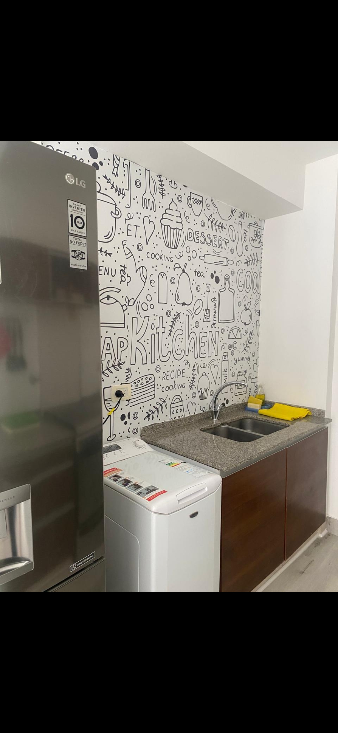 Dispone de amplia heladera con freezer y lavarropas.