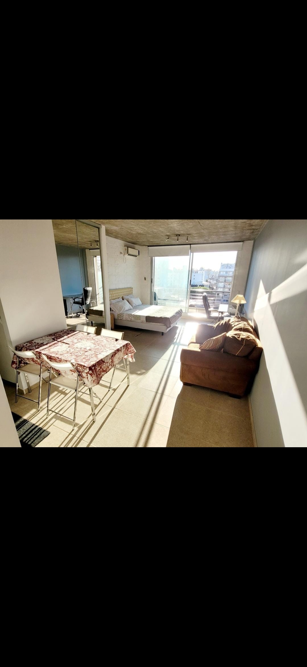 Monoambiente muy luminoso con amplio balcón con vista abierta.