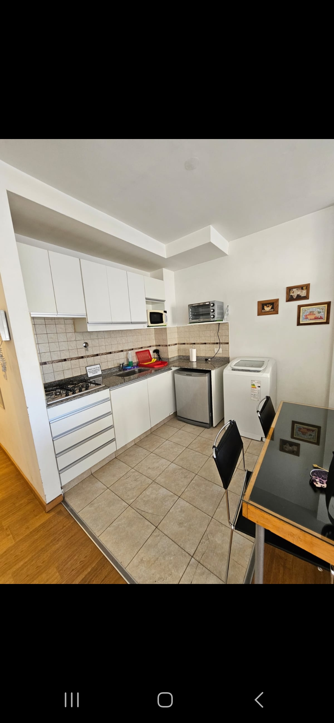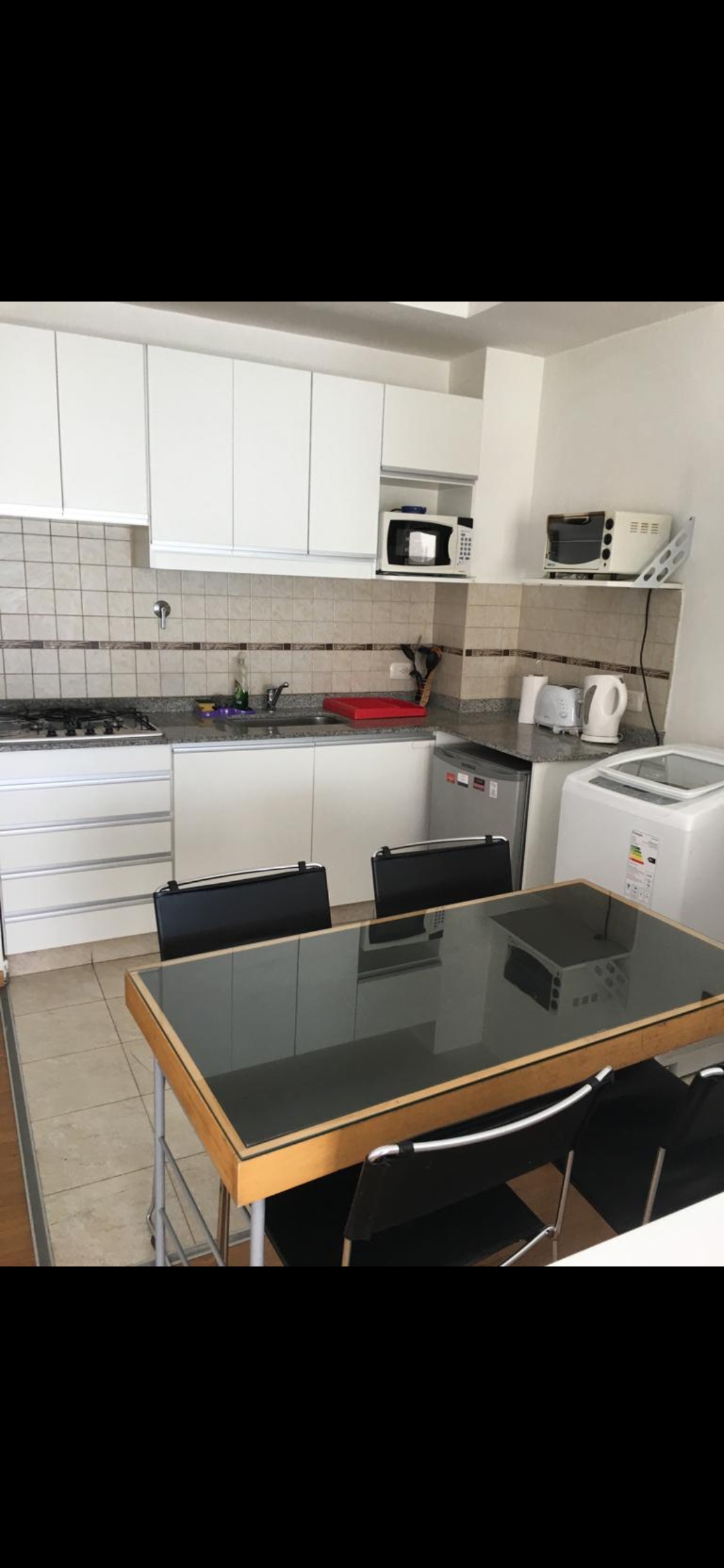 Dispone de cocina a gas heladera con Freezer lavarropas mesa y sillas para 4 comensales.