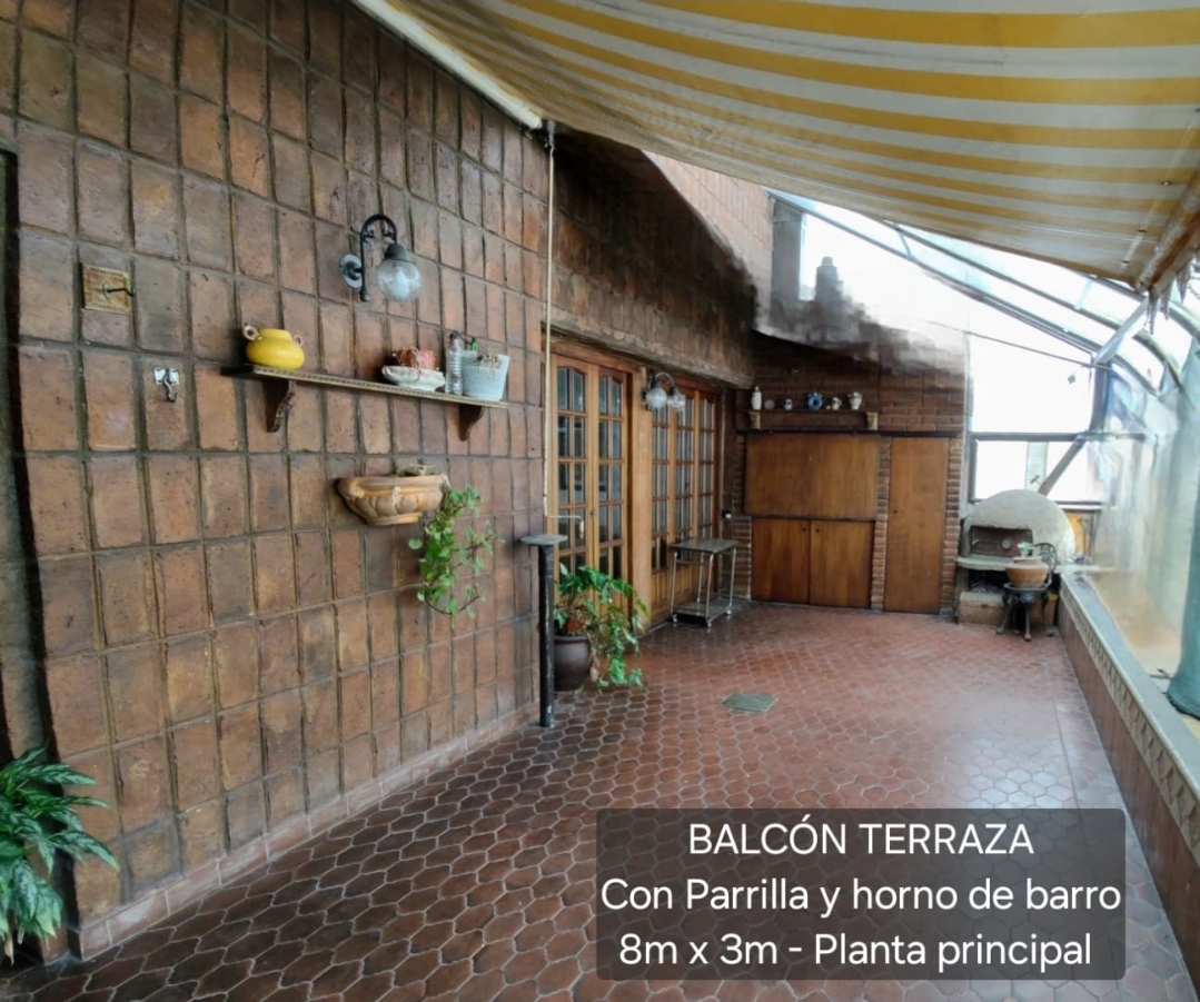 Balcón terraza de 8 x 3 metros con parrilla , horno de barro y conexión a gas, (este ultimo funciona como jardín de invierno)