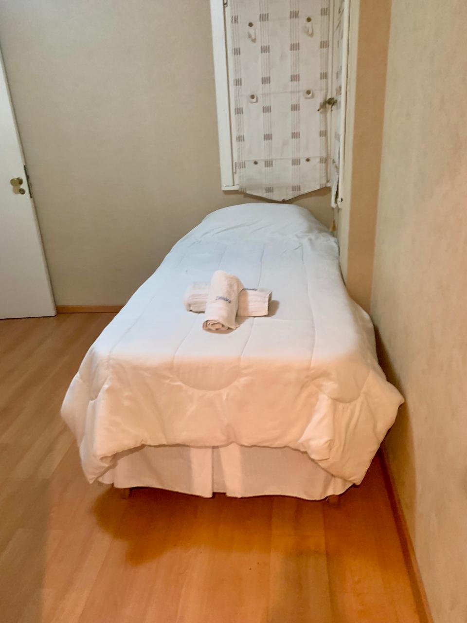 El tercer dormitorio hay una sommier de una plaza, con cama extra tipo carrito con mesa de luz, sillón hamaca, cómodo placard y aire frío calor.