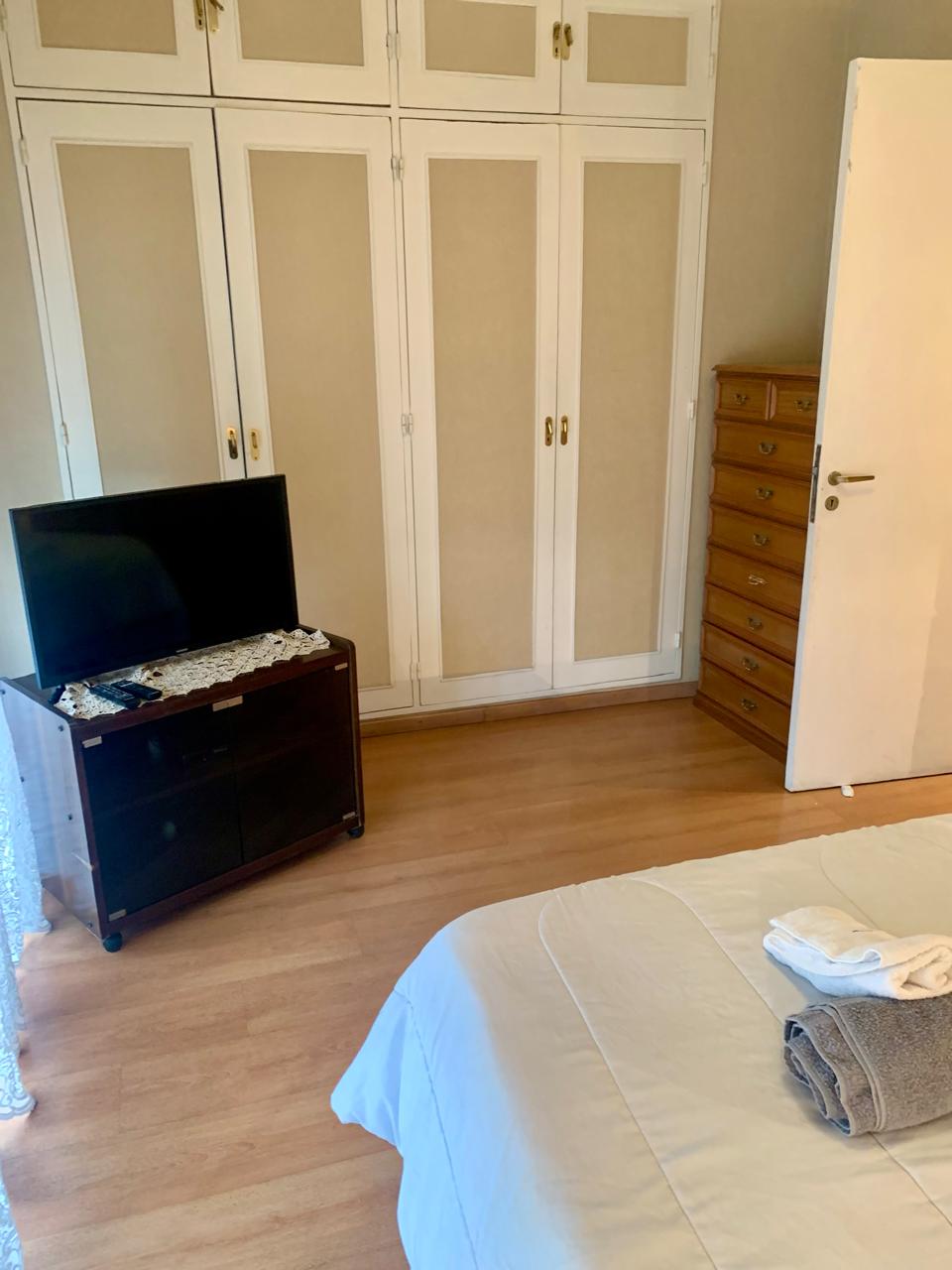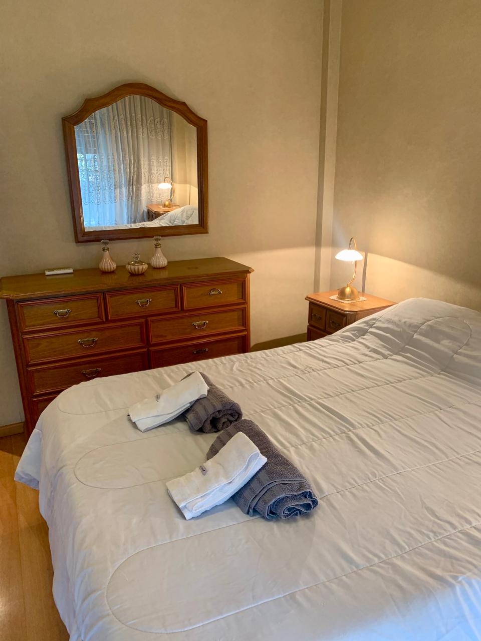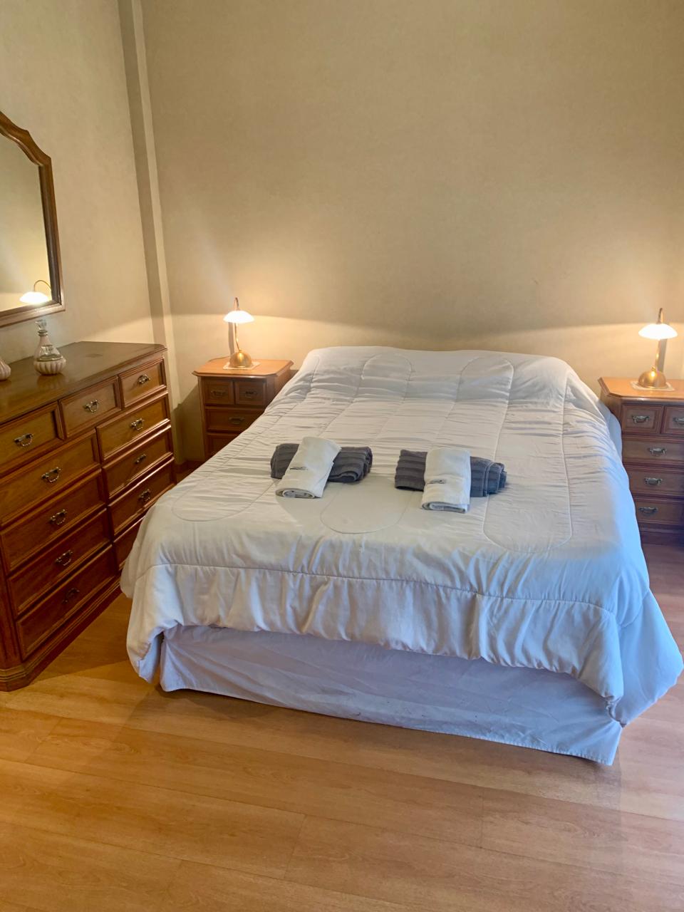 El dormitorio principal está equipado con una cómoda, un chifonier, un sommier matrimonial,TV Smart, mesas de noche con lamparas de lectura y un gran ventanal doble por el que se accede a balcón.